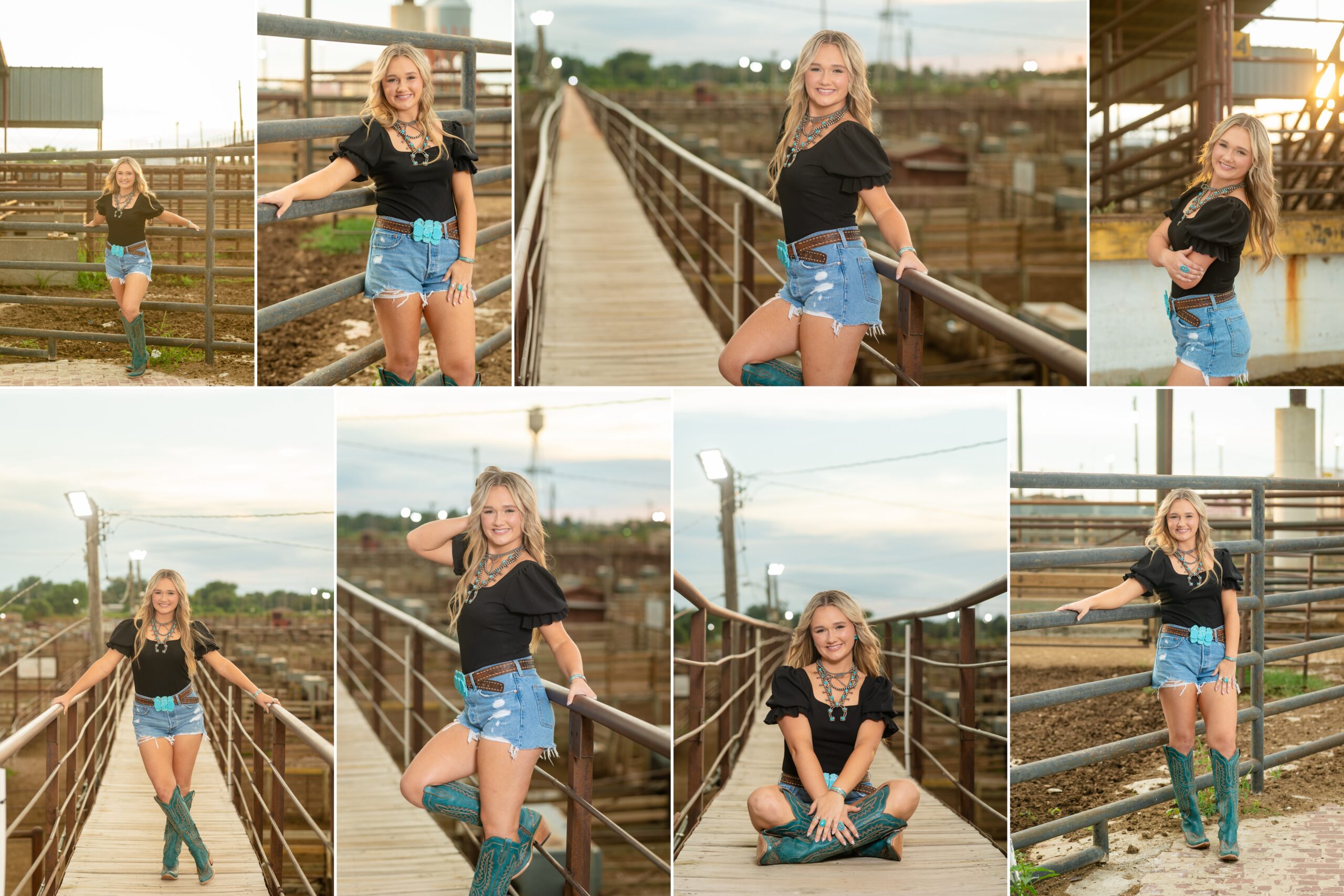 If you’re searching for western senior pictures in OKC or a location that feels rustic and unique, the OKC Stockyards are such a fun option for senior pictures in Oklahoma City. This area has a classic country feel with metal fences, wooden walkways, and wide open spaces that photograph beautifully during golden hour.
